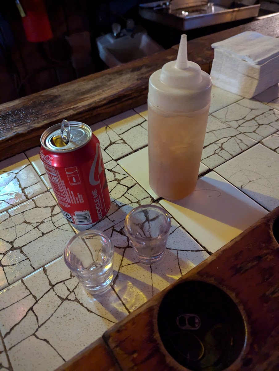 It’s important to note the place operates as cash only, so plan ahead or hit the nearby ATM. Also, the bartending style here isn’t polished cocktail craft — drinks come straight from bottles repurposed as dispensers, which adds to the quirky charm or uneasy feeling, depending on your perspective. The hanging plants and retro fittings give it a slightly eccentric, almost theatrical touch amid the grunge.
